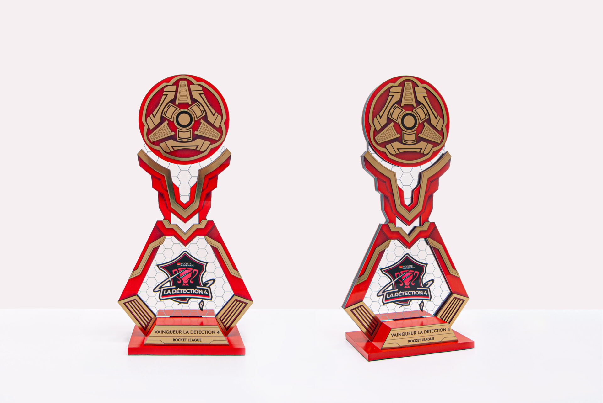 For the design of this trophy, we wanted it to be able to integrate perfectly to the fantastic electro atmosphere developed on the occasion of this tournament. With its light beam, and its structure that can evoke as well an architectural building and an alien weapon of advanced technology, his trophy seems straight out of a Space Opera.